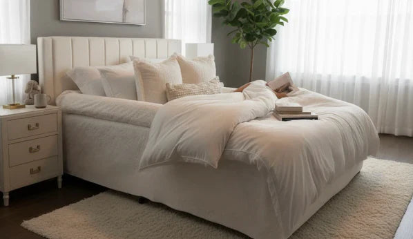 A soft, structured layer that transforms any bed into a calm, supportive, cocoon-like sleep space.